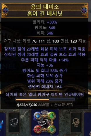 코텍스 지도를 먹고 2엑에 판데다 드랍으로 몇개 엑잘을 먹은터라 목돈이 갑자기 생겨서 그냥 샀다. 4.5엑인가에 샀는데, 사실은 그렇게까지 비싸게 주고 살만큼 체감이 크진 않다. 그냥 생명력 + 저항 + 체력 리젠 벨트면 충분할 것 같다.