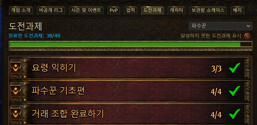 파수꾼 자체의 파밍 위력이 너무 좋아서 지속적으로 썼었다. 다 파수꾼을 사서 깨면 되는거라 챌린지 자체의 난이도는 낮았었던 것 같다. 그래봐야 유니크 파수꾼 사용하는 챌린지 정도?