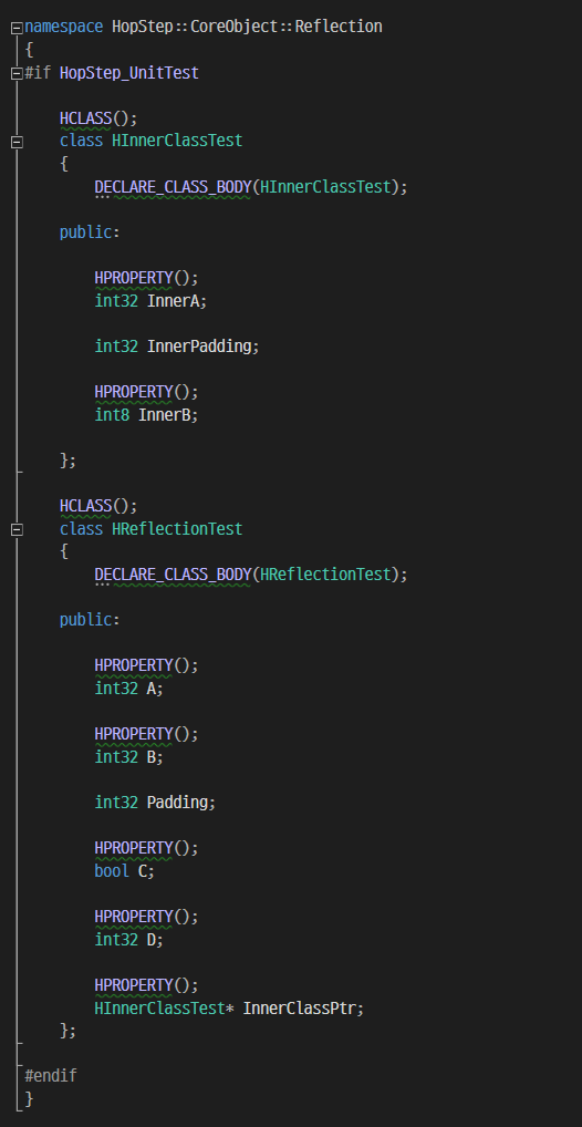 Generated.cpp는 위와 같은 코드를 만들어준다. 각 클래스의 __Fill_Class_Property_류의 코드는 static 타임에 실행이 되고, AddProperty 메서드를 통해 HClass에 프로퍼티의 정보를 미리 넣어주는 역할을 수행해준다.